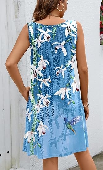 Material: 95%Polyester,5%Spandex.Skin-Friendly,Breathable,Nice and more of a soft stretchy feel.Not see through,Not shrinkage,Lightweight,Ideal for summer weather. Features:This dress features a V-neck,Sleeveless,Floral Print design.The A-line silhouette flatters all body shapes.Ideal for vacation or everyday wear,Is a must-have for the fashion-forward woman. Occasion: Whether you're heading to the beach,A dinner out,Or a casual day of shopping,This dress is versatile enough to suit any occasion.Pair it with sandals for a laid-back look or dress it up with heels and accessories for a more polished ensemble. Attention:Machine or hand wash with cold water/Hang or line dry/No bleach. Please forgive the slight color difference caused by different computer and mobile phone monitor settings.