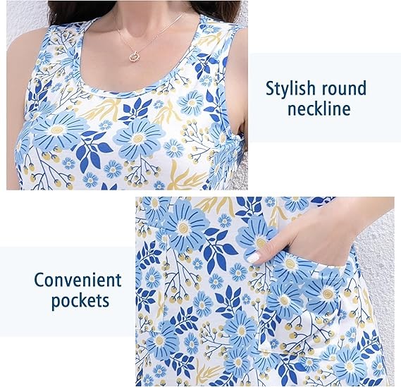 Material: Summer Dresses for women Crafted from 95% polyester and 5% elastane, womens summer dresses offers a soft, stretchy fit that resists shrinking, providing lasting comfort throughout the day. Features:Sleeveless dress for women features a vibrant print with a relaxed round neckline and flattering A-line silhouette, giving off a chic Boho dresses. Beach dress sleeveless design makes it perfect for summer. Occasion:Summer dresses perfect for casual outings, daily wear, family events, the beach, work, party,club,church,holiday,outgoing vacations, dates, shopping, and school. women's casual dresses easily transitions from casual to stylish, making it ideal for spring, summer, and fall.