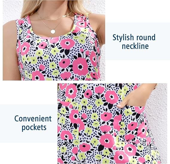 Women's Summer Dresses 2025 Casual Sleeveless Boho Beach Dress Scoop Neck T-Shirt Floral Sundress with Pocket
