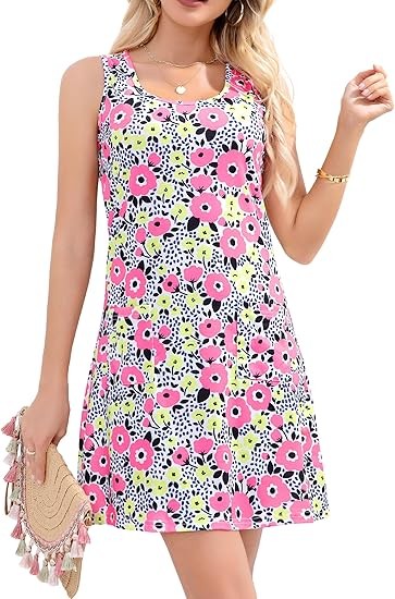 Material: Summer Dresses for women Crafted from 95% polyester and 5% elastane, womens summer dresses offers a soft, stretchy fit that resists shrinking, providing lasting comfort throughout the day. Features:Sleeveless dress for women features a vibrant print with a relaxed round neckline and flattering A-line silhouette, giving off a chic Boho dresses. Beach dress sleeveless design makes it perfect for summer. Occasion:Summer dresses perfect for casual outings, daily wear, family events, the beach, work, party,club,church,holiday,outgoing vacations, dates, shopping, and school. women's casual dresses easily transitions from casual to stylish, making it ideal for spring, summer, and fall.