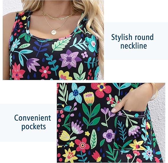 Material: Summer Dresses for women Crafted from 95% polyester and 5% elastane, womens summer dresses offers a soft, stretchy fit that resists shrinking, providing lasting comfort throughout the day. Features:Sleeveless dress for women features a vibrant print with a relaxed round neckline and flattering A-line silhouette, giving off a chic Boho dresses. Beach dress sleeveless design makes it perfect for summer. Occasion:Summer dresses perfect for casual outings, daily wear, family events, the beach, work, party,club,church,holiday,outgoing vacations, dates, shopping, and school. women's casual dresses easily transitions from casual to stylish, making it ideal for spring, summer, and fall.