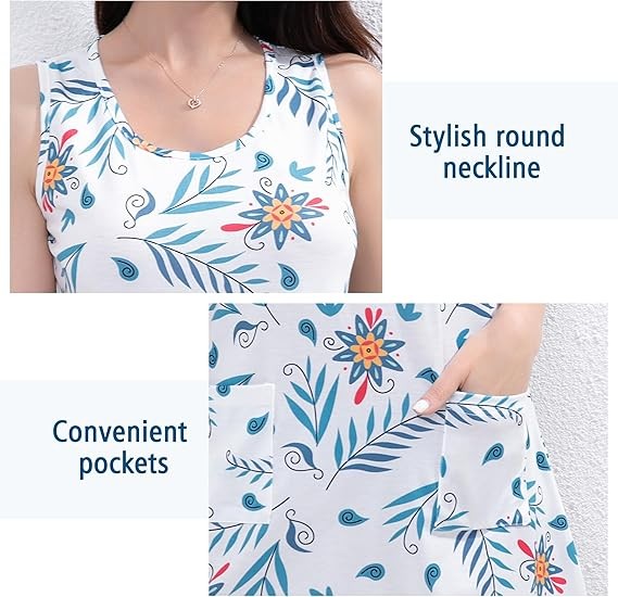Material: Summer Dresses for women Crafted from 95% polyester and 5% elastane, womens summer dresses offers a soft, stretchy fit that resists shrinking, providing lasting comfort throughout the day. Features:Sleeveless dress for women features a vibrant print with a relaxed round neckline and flattering A-line silhouette, giving off a chic Boho dresses. Beach dress sleeveless design makes it perfect for summer. Occasion:Summer dresses perfect for casual outings, daily wear, family events, the beach, work, party,club,church,holiday,outgoing vacations, dates, shopping, and school. women's casual dresses easily transitions from casual to stylish, making it ideal for spring, summer, and fall.