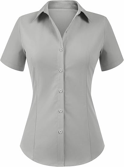 Women's Button Down Shirts Short Sleeve Dress Shirts Basic Business Collared Work Blouses