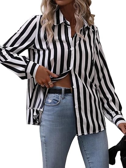 Women Pattern Print Button Down Blouse Top Long Sleeve Work Business Shirt