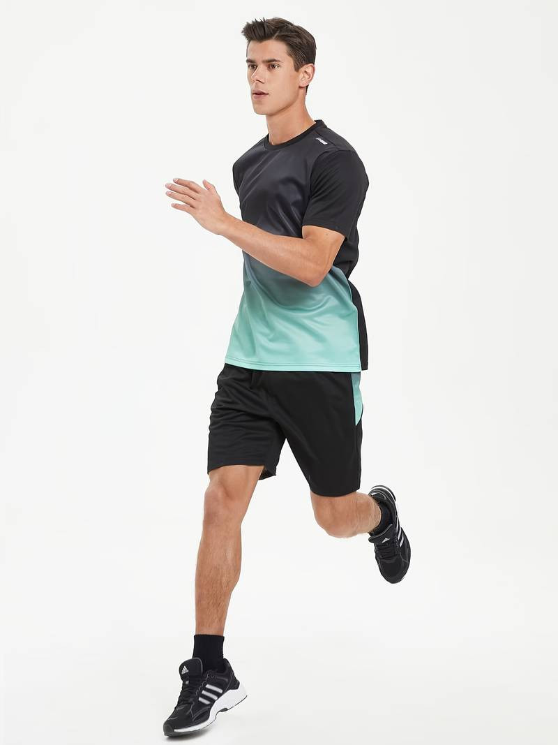 Summer new Men's running quick-drying sports leisure ice y set Men's summer T-shirt short sleeves shorts mesh sportswear Half-length pants gradient set