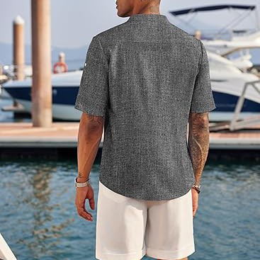 PREMIUM FABRIC】: The summer beach shirt is made of high-quality fabric, which is lightweight, breathable, soft to the touch, moisture-wicking and non-fading. 【CASUAL & FASHION】: Mens casual chambray shirt comes with band collar, button-down closure, rounded hem. The henley shirt can be worn with the sleeves rolled up or down, keep you cool and relaxed all the time especially in hot summer. 【CLOTHING MATCH】: Men's short sleeve summer shirt could be easy to match with slacks, chinos, jeans or dress pants to create a simple yet stylish look. Wear with shorts, sunglasses and a hat for the perfect beach vacation look.