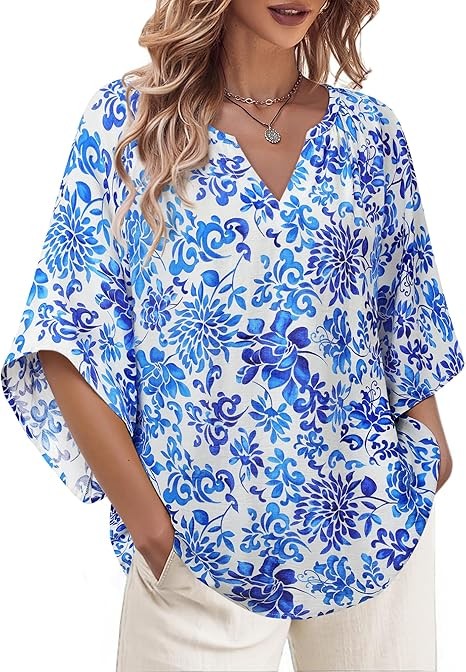 BOHO FLORAL PRINT: The paisley print on this half sleeves loose top gives it a boho vibe, gives you a flowy feeling. The print is in bright colors, making it a standout piece in your collection of chic blouses.The material of this retro and fashion tunic shirts is breathable,lightweight and soft.Fabric that feels like linen makes you more cool IRREGULAR BELL SLEEVES: Turn heads with fashion-forward 3/4 length bell sleeves featuring subtle cutouts. The playful yet polished silhouette flatters every arm shape while adding movement to your step. HIGHLIGHTS: With the subtle floral pattern and the charming split v neckline, the boho shirt tops looks feminine and casual at the same time. and the flowy blouse with a slightly longer cut, which can skilfully conceals hip areas