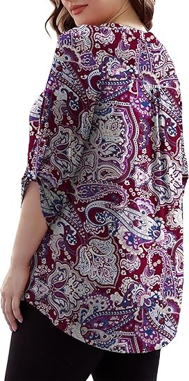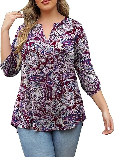 【SIZE】Womens plus size tops, plus size blouses for women, 6 US sizes(M,L,1X,2X,3X,4X) 【FEATURES】Floral Print, 3/4 sleeve, fashion V neck design,plus size tops for women, swing hem drapes nicely and hides your belly & hips well, adds femininity 【PAIRS WITH】Plus size 3/4 sleeve tops for women, plus size blouse, match this plus tunics with jeans, leggings in Spring, Summer and Fall 【OCCASIONS】 Dressy casual business fashion comfy loose fitting womens plus size blouses, Suitable for Office/ Dating/ Formal Occasions/ Daily Casual Wear/ Workwear, etc