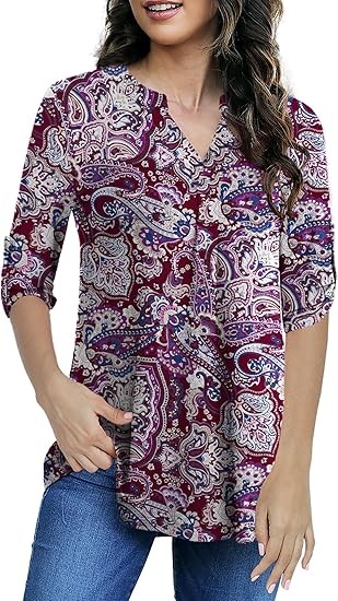 Womens Tops Dressy Casual 3/4 Sleeve Shirts Tunic Blouses Plus Size Tops for Women