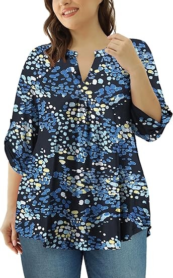 【SIZE】Womens plus size tops, plus size blouses for women, 6 US sizes(M,L,1X,2X,3X,4X) 【FEATURES】Floral Print, 3/4 sleeve, fashion V neck design,plus size tops for women, swing hem drapes nicely and hides your belly & hips well, adds femininity 【PAIRS WITH】Plus size 3/4 sleeve tops for women, plus size blouse, match this plus tunics with jeans, leggings in Spring, Summer and Fall 【OCCASIONS】 Dressy casual business fashion comfy loose fitting womens plus size blouses, Suitable for Office/ Dating/ Formal Occasions/ Daily Casual Wear/ Workwear, etc