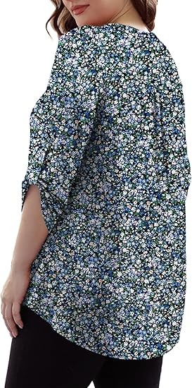 【SIZE】Womens plus size tops, plus size blouses for women, 6 US sizes(M,L,1X,2X,3X,4X) 【FEATURES】Floral Print, 3/4 sleeve, fashion V neck design,plus size tops for women, swing hem drapes nicely and hides your belly & hips well, adds femininity 【PAIRS WITH】Plus size 3/4 sleeve tops for women, plus size blouse, match this plus tunics with jeans, leggings in Spring, Summer and Fall 【OCCASIONS】 Dressy casual business fashion comfy loose fitting womens plus size blouses, Suitable for Office/ Dating/ Formal Occasions/ Daily Casual Wear/ Workwear, etc