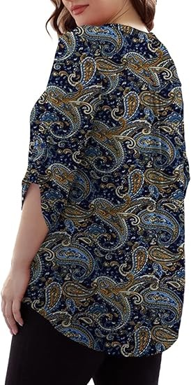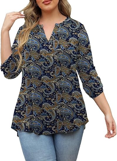 【SIZE】Womens plus size tops, plus size blouses for women, 6 US sizes(M,L,1X,2X,3X,4X) 【FEATURES】Floral Print, 3/4 sleeve, fashion V neck design,plus size tops for women, swing hem drapes nicely and hides your belly & hips well, adds femininity 【PAIRS WITH】Plus size 3/4 sleeve tops for women, plus size blouse, match this plus tunics with jeans, leggings in Spring, Summer and Fall 【OCCASIONS】 Dressy casual business fashion comfy loose fitting womens plus size blouses, Suitable for Office/ Dating/ Formal Occasions/ Daily Casual Wear/ Workwear, etc