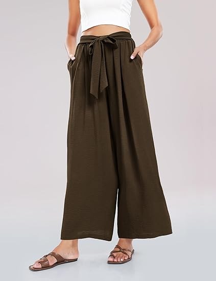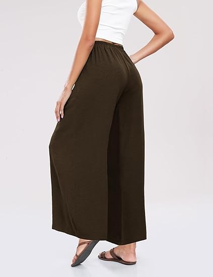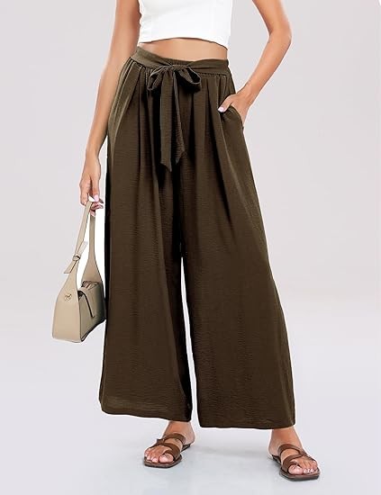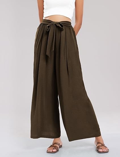 Classic &Comfort】Wide leg high waisted pants for women are made of high quality linen & cotton blend fabric, flowy beach pants lightweight and soft, skin-friend. 【Note Size】Loose dress pants for women for S- XXL, please refer to the picture on detail page ,loose pants for women high waist,wide leg beach pants for women,high waisted boho pants, flowy pants for women,high wasted pants,tie front flowy wide leg pants. 【More unique design】Womens high waisted wide leg pants are designed with solid color. loose fit palazzo pants for women with two pocket,wide leg pants, flowy summer pants,beach cover up pants,elastic waist, bow tie,suitable for all shapes and sizes 【Perfect for More Occasions】Summer dress pants for women who go from the office to casual life with the whole process, yoga, jogging, hiking, outdoor activities, casual wear, home wear, streetweat, going out, vacation or beach wear. summer wide leg pants for women 2024 suit all occasion.