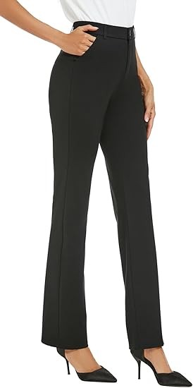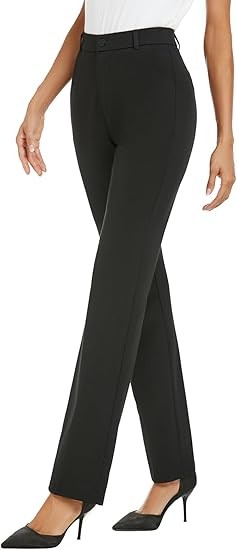 Stretchy and comfortable material: Made with a comfortable and stretchy blend of materials, these dress pants for women move with you throughout the day without losing their shape. They're also high waisted for added comfort. Regular inseam length is 32" / Short inseam length is 29" / Tall inseam length is 35". Convenient features: With two real/functional slant front pockets and two faux back pockets, front and back blet loops, these women's casual pants provide plenty of space to store your phone, keys, and other essentials while on the go. Comfortable waistband: The stretchy waistband on these trouser pants is comfortable and flattering, the zipper fly and button end on these trouser pants provide a secure and comfortable fit. They're a great choice for women looking for high waisted work pants that offer both comfort and style. Versatile style: These women's work pants are perfect for both business and casual wear, with a straight leg design that flatters any figure. They can also be worn as women's slacks or business casual pants. Easy care: These formal pants for women are machine washable for easy and convenient care, making them a great choice for busy women on the go. They're also black slacks women can wear repeatedly without worrying about fading or wear and tear. You can iron the pants to remove any wrinkles, it won't faded and shrunk.