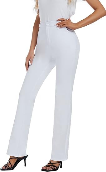 Stretchy and comfortable material: Made with a comfortable and stretchy blend of materials, these dress pants for women move with you throughout the day without losing their shape. They're also high waisted for added comfort. Regular inseam length is 32" / Short inseam length is 29" / Tall inseam length is 35". Convenient features: With two real/functional slant front pockets and two faux back pockets, front and back blet loops, these women's casual pants provide plenty of space to store your phone, keys, and other essentials while on the go. Comfortable waistband: The stretchy waistband on these trouser pants is comfortable and flattering, the zipper fly and button end on these trouser pants provide a secure and comfortable fit. They're a great choice for women looking for high waisted work pants that offer both comfort and style. Versatile style: These women's work pants are perfect for both business and casual wear, with a straight leg design that flatters any figure. They can also be worn as women's slacks or business casual pants. Easy care: These formal pants for women are machine washable for easy and convenient care, making them a great choice for busy women on the go. They're also black slacks women can wear repeatedly without worrying about fading or wear and tear. You can iron the pants to remove any wrinkles, it won't faded and shrunk.