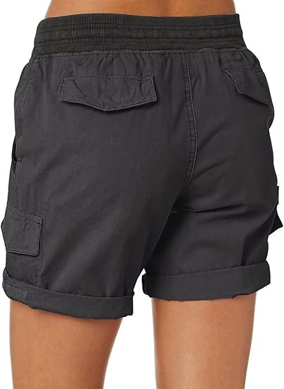 Stay Cool and Stylish: Stay cool and comfortable in our women's shorts made with 98% cotton and 2% elastane for a soft and skin-friendly fit Stay Active and Comfortable: Our sports shorts come with 4 multifunctional pockets, 2 decorative fake pockets on the buttocks (without back pockets), and an adjustable drawstring waist to stay organized during outdoor adventures Get Ready for Adventure:Take on any outdoor activity with ease in our cargo shorts, perfect for hiking, camping, traveling, and fishing.