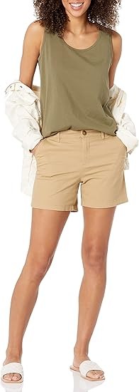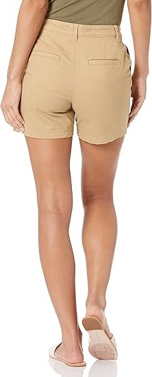 STRAIGHT FIT: Slim fit through the hip and thigh, straight through the thigh and leg opening. Also offered in Curvy sizes for a curvier fit through the hip and a narrower waist. STRETCH COTTON TWILL: Washed for softness, this cotton twill is naturally breathable and has a bit of stretch for comfort and flexibility. CLASSIC KHAKI SHORT: These classic Khaki shorts are the ultimate summer style. Offering a clean, gently structured silhouette, these shorts also fit with comfort and ease for at work, weekend exploring, or running errands. Complete your look with Essentials Women's Sneakers or Sandals.