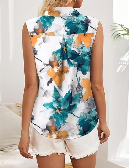 Quality Sleeveless Tops - Crafted from premium fabric 92% polyester and 8%Spandex, soft to the touch, lightweight and comfortable Classic Collared Shirts - Spread collar, button-up front closure, curved hem, clean chest-cut design for adding effortless enhancement to your silhouette and bringing business professional polish to any outfit Versatile Button Down - You can dress down with jeans, shorts,denims for relaxed yet polished casual look or dress up with skirts, slacks or dress pants for a dressy and professional look. Tuck for dressy casual look while untuck for a more business casual look