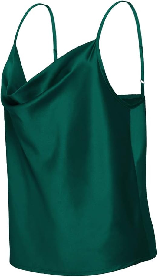 Women's Silk Satin Camisole Cowl Neck Tank Top Cami Silky Basic Tank Shirt Blouses